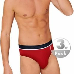 Schiesser Rio-Slip 3er Pack 173985/909 Slips, Baumwoll-Stretch, Rot-blau grau, Rot-blau-grau