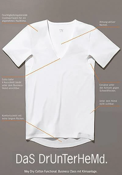 Das perfekte Business-Shirt unter dem Hemd! Es überzeugt durch die COOLMAX®-Ausrüstung mit klimatisierender Wirkung. Die geruchshemmenden Einsätze unter den Achseln schützen vor Schweißflecken und der atmungsaktivem Nackenbereich sorgen für exzellenten Tragekomfort.